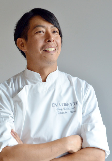 森 大祐EN VEDETTE(アンヴデット) オーナーシェフロイスダール、グランドハイアット東京にて修行し、渡仏。 M.O.F.(フランス国家最優秀職人章)の称号をもつローラン・デュシェーヌ、モワザンにてシェフ・パティシエとして勤務後、帰国。東京 豊洲 パティスリーSAKURAのシェフ・パティシエとしてオープニングから携わり、 新歌舞伎座 開場記念土産「KABUKU~へん」を開発。2016年10月より、 EN VEDETTE(アン ヴデット) 開業。2019年11月渋谷店開業、2023年3月EN VEDETTE Luxe開業。シャルル プルースト 一般味覚審査 優勝、ディジョン アントルメ&ピエスモンテ部門 優勝、The World Trophy of Pastry Ice Cream and Chocolate 銅メダルなど、国内外の受賞歴多数。