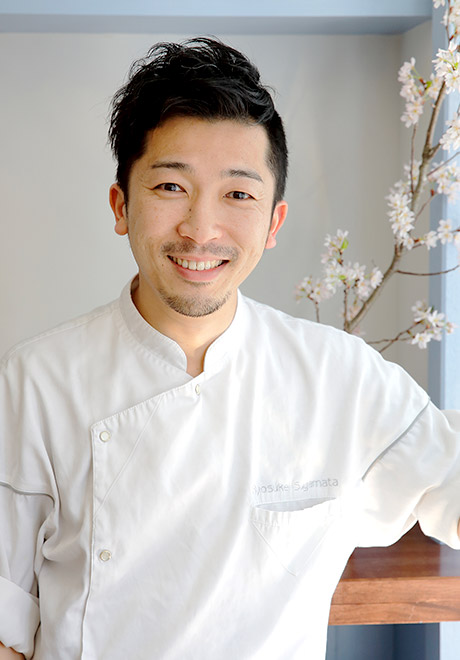 菅又 亮輔Ryoura(リョウラ) オーナーパティシエ高校卒業後お菓子の世界に入り、26歳で渡仏。ノルマンディ、ローヌアルプ、アルザス、パリとフランス各地で3年にわたって修行。帰国後、「ピエール・エルメ サロン・ド・テ」にてスー・シェフを務め、エルメ氏の技術はもとより、芸術性、創造性、感性など、その奥深さを学ぶ。